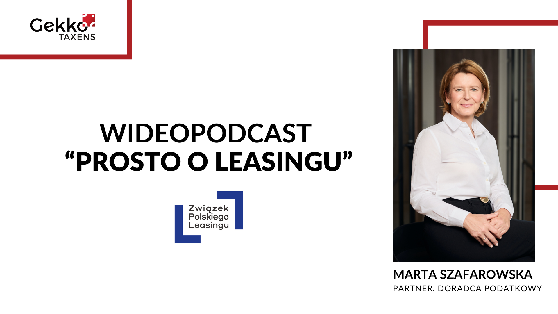 W najnowszym odcinku wideopodcastu Związku Polskiego Leasingu „Prosto o leasingu” doradca podatkowy Marta Szafarowska, partner w Gekko Taxens, rozmawiała o praktycznych kwestiach związanych z leasingiem samochodów – z perspektywy podatkowej. Rozmowa dotyczyła zarówno obowiązujących limitów (przypomnijmy: 150 tys. zł dla aut spalinowych / 225 tys. zł dla elektryków i samochodów wodorowych), jak i nadchodzących zmian w tym zakresie.